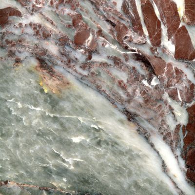 This marble of generally cataclastic texture has red-yellow veins, knots and zones in a white background. It can be used in interior/exterior plating, floor covering and decoration.